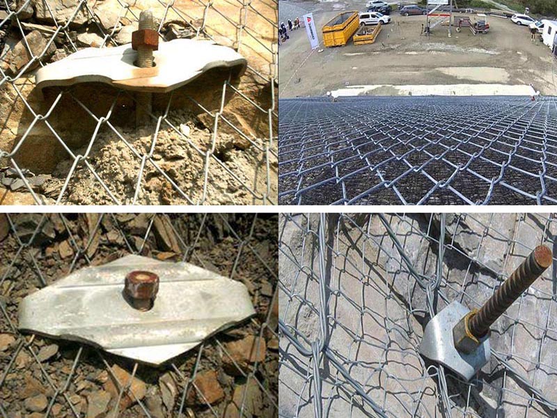 鋼絲格柵安裝固定方式:坡面注漿打孔、鋼筋錨桿固定、專用錨墊板加固,安裝后的牢固性異常牢固,三層加固方式。其承受巖石的沖擊力是普通格柵網的5倍之多。其抗拉強度分為:縱向抗拉強度-150kN/m;橫向抗拉強度-60kN/m