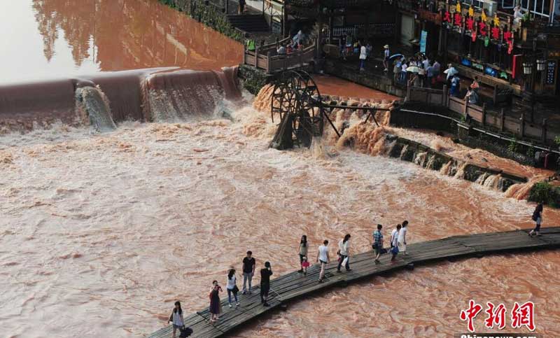 湘西鳳凰古城連降暴雨邊坡泥土嚴重流失