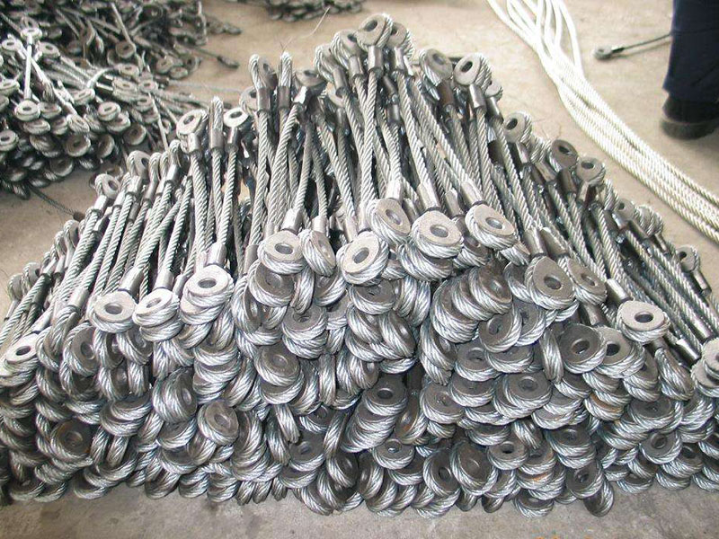鋼絲繩錨桿生產工藝:將鋼絲繩錨桿對折圍繞在熱鍍鋅雞心環上,并用繩卡固定(注:U型繩卡的使用方法